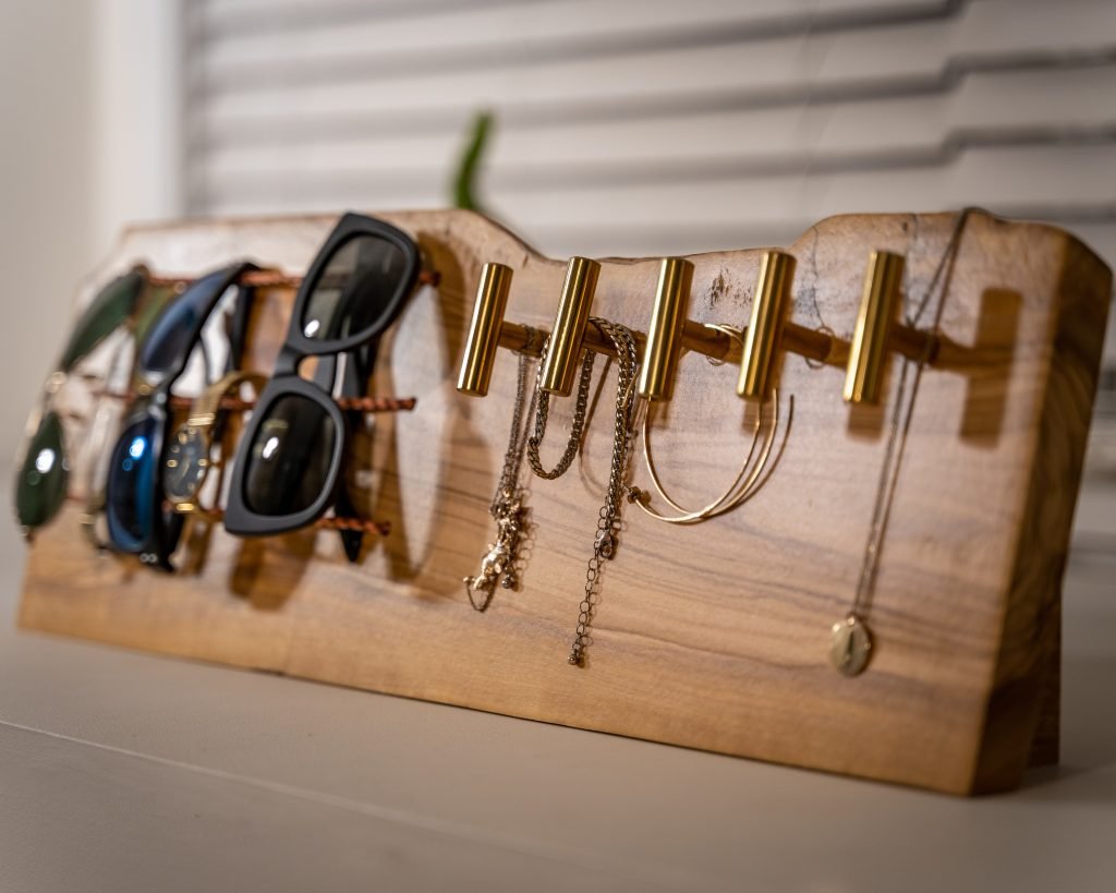 Live Edge Olive Wood Sunglass Stand